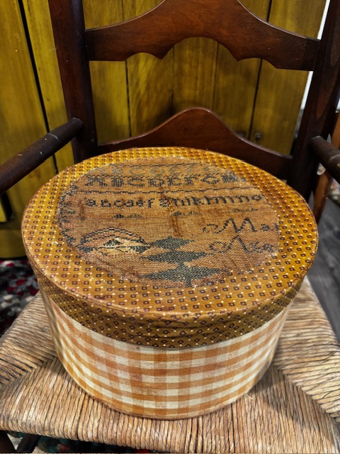 Cross StichFor your consideration is this fabric covered box I have created. It measures 9”. It is covered with a large fragment of an 1802 schoolgirl sampler. US shipping will be $7. Thanks for stopping by! $50.00