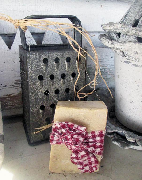 A nice chunk of actual antique soap, likely about 90 years old. Hard as a rock and ready to grate on the old vintage grater to give you the best soap for washing antique linens and your hands too! Soap weighs 4.9 oz and comes wrapped in gingham ribbon. This soap looks great next to the sink and will last a very long time if kept dry. Cost for the pair is $22 plus $6 shipping. Email me at ccradle@worldpath.net if you would like to purchase and thanks for stopping in!