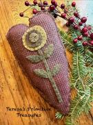 An 8" wool pillow designed and entirely hand-stitched by me! I love this piece of hand-dyed red, which I also used for the back of the pillow. I appliqued one simple mustard and brown penny flower to the front, along with four leaves. It is stuffed with wool snippets, which gives it a lumpy, heavy feel. It is sewn together with a blanket stitch. Shipping is included in the price.