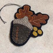 This wool appliqued ornament is made of overdyed wool with beautiful cotton back. Stitching is done with over dyed flosses.