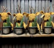 Cute little Gertie Owl is holding her caroling music all dressed up in her favorite beanie and scarf. This mitten ornament is appliqued in wool using over-dyed cotton flosses and button eyes. Background wool is a beautiful over-dyed textured tan to make this a one of a kind 5" x 7" hand stitched heirloom ornament. Backing fabric is a wonderful homespun cotton. Design by Little Red Hen and lovingly stitched by me.