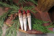 I've created these extra prim grainsack winter hearts from heavy natural linen. They're stuffed firmly with fiberfil. I've stenciled in olde time grainsack style a winter sentiment as pictured. I've painted them, aged them deeply and added rusty jingle bells and heavy rusty wire hangers. Hearts are just about ten inches across and twelve inches long, including the hanging loop and bell. They have been been created by me, Denise Davis, in my smoke free, kittycat friendly home, a Sassafras Hill original. sold individually. *both are spoken for, thank you*
