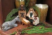 ***CLICK ON IMAGE FOR MORE PHOTOS***...I am offering my original design of a Nativity. The set includes Joseph, Mary, Jesus in a manger, a donkey and a sheep. Joseph is 5 3/4" H, Mary is 4" H, the donkey 3 1/2" lengthwise lying down, the sheep is 2 1/4"H and Jesus is 1 1/2"H x 1 3/4" long. Mary and Joseph are wearing subtle colors....baby Jesus' manger has hearts at the headboard and the footboard. The sheep has a red bow and a sprig of holly on his back end! They all have been painted and very slightly aged and antiqued. I am kindly asking 145.00 for the 5pc set. The sheep and baby Jesus will be offered as single ornaments as well, further down in the postings. I gladly accept paypal....please email mommadonnatx@gmail.com to make a purchase. Thanks for your visit to PHM today.....Merry Christmas!