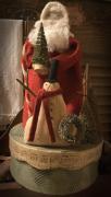 I’ve stitched this sweet lil snowman from osnaburg. He's been stuffed firmly, aged, and painted. He has beady eyes, twig nose, and a stitched mouth. He sports a coverlet hat and aged woolen scarf. He has beaded buttons. He has a prim little tree bell dangling from his scarf, and a rusty bell sewn to the tip of his hat. He has twiggy arms and He is tucked inside a vintage bucket with some faux greenery and moss. Bucket is about 7.5 inches diameter. He’s about 11” tall including his hat. He will come signed and dated. *tis spoken for, thank you*