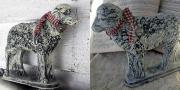 Antique Look Covered Paper Mache Box with Bird and Pin Cushion