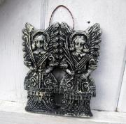 My first offering is this vintage little tin, with a lovely old patina, that I’ve used to create an ornament out of it. I have sewn the snowman onto several pieces of fabric including either wool, lace and/or cheese cloth. Then I’ve glued everything down into the bottom of the tin. Using waxed linen I tied a knot thru a small button, then drilled a hole thru the top of the tin to pull the waxed linen loop thru it and glued the button to the top of the tin to be able to hang the ornament. The snowman is all handsewn out of wool, stuffed to make into balls, attached to each other and then added small vintage glass beads for eyes and buttons. He has an acorn cap and I’ve also glued in some sisal trees in the tin as well. The snowman is 1 1/2” tall, the tin is 3 1/2” tall by 2 1/2” wide. If you have any questions please ask. Kindly asking $38 plus $5 for shipping. Thank you so much.