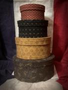 I had the best time watching Bridgett making her wonderful fabric covered pantry boxes. Her instructions were so easy to follow, well I had to make a set! My covered pantry boxes are covered with reproduction fabrics. I have 4 in this set. The whole set measures 11 inches tall. They have been gently distressed and antiqued. Perfect for your primitive home. Great to store your treasures! Thank you again, Bridgett from Bridgett's Primitive Passion on You Tube. Shipping will be included in the price.