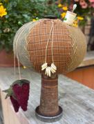 I love making these tomatoes so much and thought a strawberry on top was the perfect choice. This was made using beautiful hand dyed red and green wools from Blackberry Primitives. I added a few black pins, a beautiful antique glass swirl pin and a silver heart in hand charm. It’s firmly stuffed/filled with 2 1/2 - 3 cups of crushed walnut shells to keep your pins and needles sharp. The pink strawberry is firmly attached to the tomato. It is approximately 4 1/2” tall. Kindly asking $95.00 and $10.00 for travel fare.