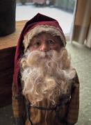 I’ve created this beautiful olde timey Santa with a paperclay face I've molded from a vintage mold. He has handpainted features. He’s dressed in wool trousers, jacket and hat. His scarf is wool and his tummy is wrapped with twine. He carries a chenille candy cane and a walking stick. He's sitting on my hand done prim reindeer. I've stitched the reindeer from muslin, stuffed firmly, painted and aged for an olde timey appearance. It has beady eyes, rusty bell nose, stitched mouth, wool collar, and large brass bell. Legs are stitched firmly in place and Matt created the perfect chunky barnwood base for it. He’s just about 13 inches tall and 10 inches long. He will come signed and dated. Created with many loving stitches in my smoke free home, a Sassafras Hill original. *tis spoken for, many thanks*