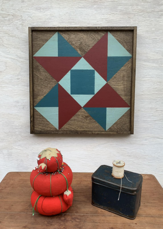 This is aged with a country, folk art, primitive home in mind. Maybe you’d like to start a barn quilt collection on a gallery wall in your farmhouse or cabin? Wouldn’t these look awesome in the increasingly popular barndominiums?!