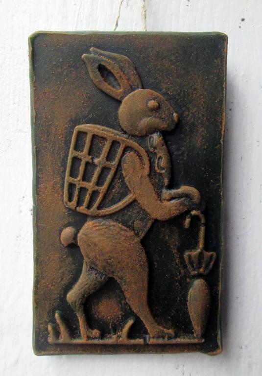 Adorable Blackened Beeswax Bunny with parasol and basket Poured from a vintage mold dusted with cinnamon for a rustic look and great scent. Comes with care tag and hanger, bunny is 5" by 3" Cost is $14 plus $6 shipping I have two available, email ccradle@worldpath.net if you would like to purchase, thanks for stopping in!