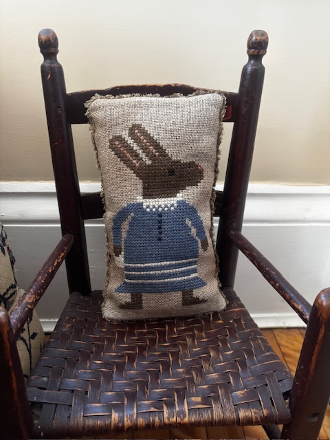 I absolutely love this sweet creation, by Asbery's Echoes Stitches, Rhonda Meiners. This is a tall gal, measuring 12" x 6." She is stitched with hand dyed merino wool yarn on primitive rug hooking linen. She is lightly rag stuffed, with added hand dyed trim attached. US shipping will be $6.00. I also have a George Washington pillow on my page this month! So much fun to create! Thanks for visiting!!