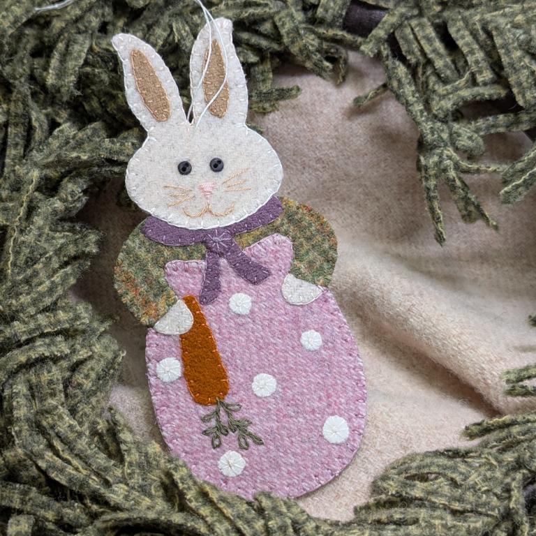 This wool appliqued ornament is made of overdyed wool with beautiful cotton back. Stitching is done with over dyed flosses. It measures approximately 3 1/2" x 6". Designed by Buttermilk Basin and stitched by me. As always the cost of postage is included if mailed within the connected 48 states. I may have more than one of this design so if you want multiples, just ask. Email me at mollyandpeewee@gmail.com with your choice of method of payment. I take PayPal, Venmo and Zelle. Thank you for looking. Debbie