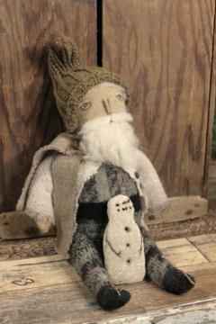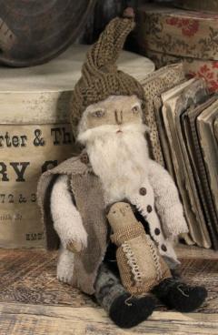Hello and thank you for visiting my page. My November offerings include three small but sweet Santa dolls. This little guy measures just 8.5 inches tall seated. He does not sit on his own and his legs are sewn into place. His body is made from a soft, green plaid fabric. His arms are wired for posing and he has a sweet, stitched face and wool beard, brows and hair and a teensy, tiny, needle felted mouth. He has a stocking hat with a rusted bell tied to the end and a soft, lightly aged coat with wooden beads serving as buttons. His boots are painted on and he has an aged scarf and he comes with a teeny snowman doll. The snowman doll measures only about three inches long with a stitched face and arms. The Santa doll will come with a signed and dated tag. **** If you would like to purchase this sweet Santa, please send me an email at buttonboxmerc@yahoo.com and let me know that you'd like Santa #1 I accept PayPal as payment so please include your PayPal email address as well as your zip code so I can figure the shipping. Thank you so much for stopping by. Wishing you all a very Happy Thanksgiving and I'll "see" you again in December! Santa #1 is $65 plus shipping