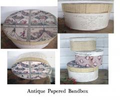 I've papered this heavy cardboard oval BAND BOX with beautiful antique French script papers and a lovely antique style print on lid. Box is large and measures