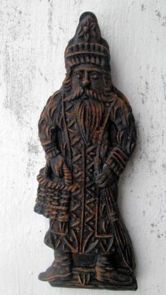 beeswax folk art with spices to bring out the details and impart a wonderful holiday scent. Santa is 7 3/4" tall and 1/4" thick. He comes with a twine hanger and care tag.