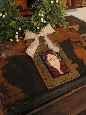 ***CLICK ON IMAGE TO SEE OTHER PHOTO***...I am offering this Santa that has been punched using a mix of Valdani and DMC thread. I have included a primitive bow with frayed edges and a large rusty bell. The board measures about 7 3/4" H x 4"W. I am kindly asking 62.00, plus postage for this piece. I gladly accept paypal...please email mommadonnatx@gmail.com to make a purchase. Thanks so much for your interest in the handmade items here at PHM!
