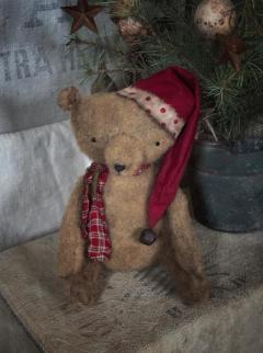 Sold. Little bear, made from plush felt & rag stuffed. Measures 4 1/2” tall.