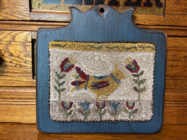 Folky Bird is a design by Robin Leuschen - Bird in the Hand Primitives.. Punched with Valdani 3 ply floss the punched piece measures about 4.5" x 3.5". It is mounted on a painted wood board with twisted cord trim around the punched piece. The board measures 6" x 6". {click on the item photo to see more} Kindly asking $75.00. Shipping will be $7.00. If you are interested in purchasing please email me your mailing address and paypal address to nancy@nancyknight.com so I can invoice you or let me know if you want to send a check. Smoke free home with one non-shedding dog. Your package will be readied for mailing the day after payment and scheduled for a USPS pickup the next available day. Tracking info will be sent separate.