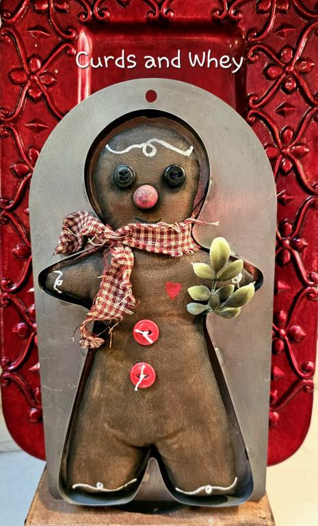 Winter isn't over yet! I found this lovely vintage gingerbread cookie cutter and made a ginger to fit perfectly inside. It's created using vintage buttons with the cutest little nose. This piece measures 10" and can be tucked into an arrangement or hung from a loop. ^^Support^^