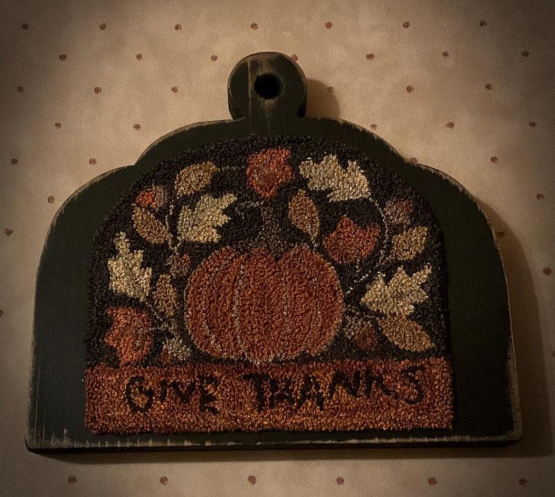 Give Thanks is a lovely pattern from Teresa Kogut. I have punched using TOTF threads and valdani threads. I have securely attached to a horn book that has been painted sanded and antiqued. Piece measures 6 1/2 inches tall and 7 inches wide. Shipping is included in the price. SOLD THANK YOU!