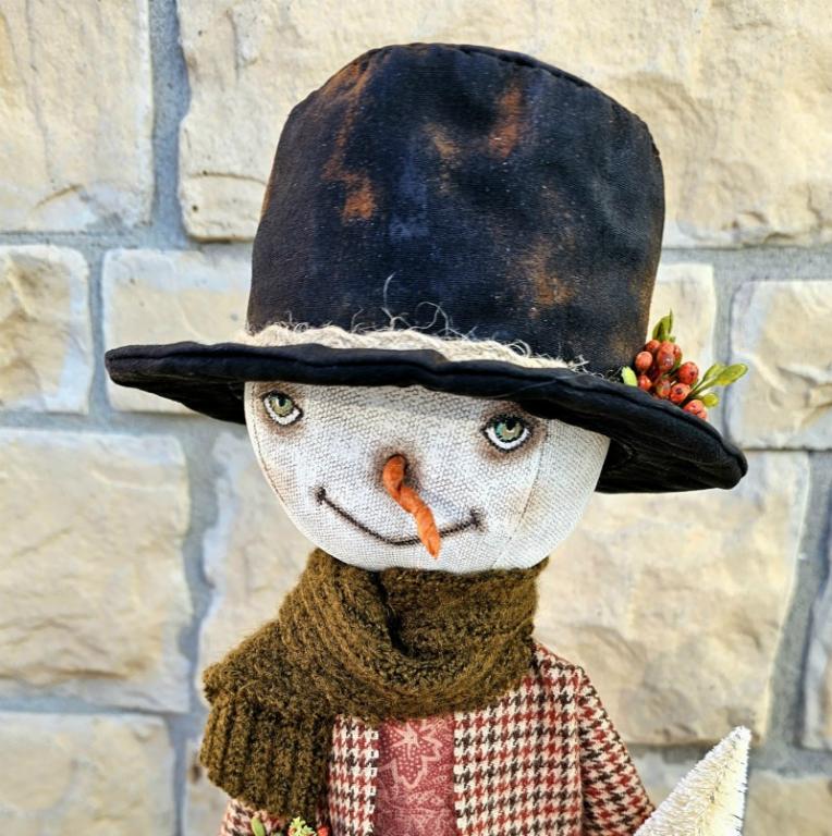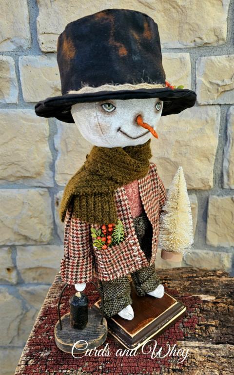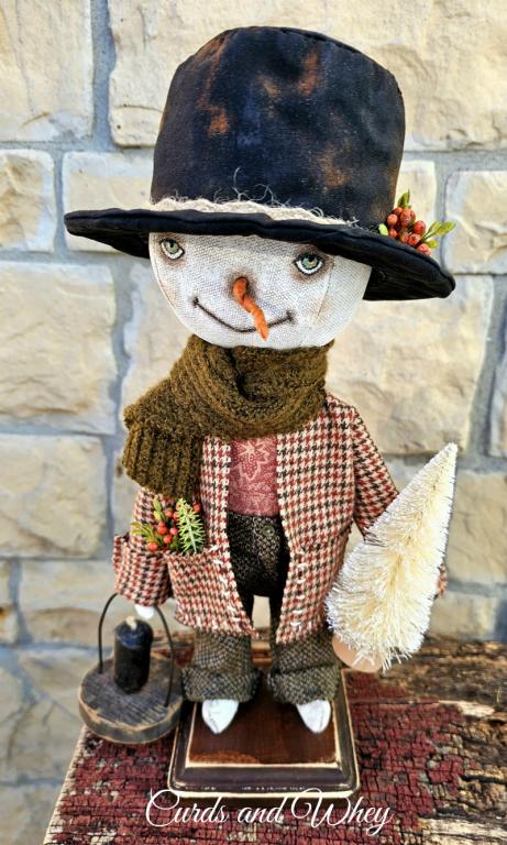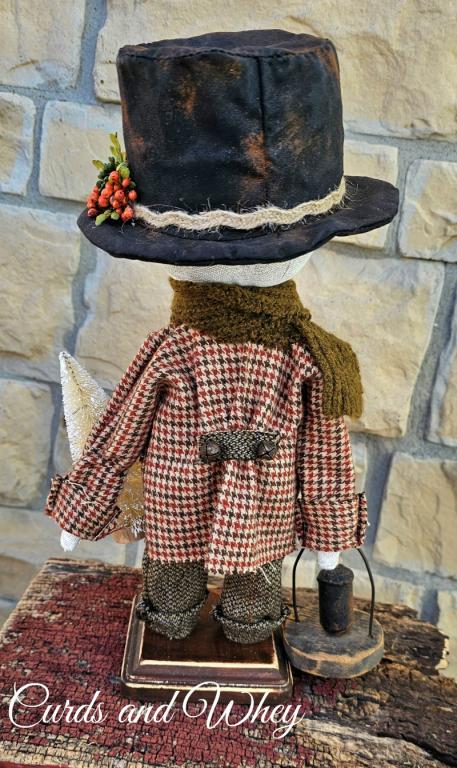 Meet Gomez! He is ready for the frosty weather and all your decorating needs. He is 14" tall to the top of his removable top hat and is dressed in his finest wool blend pants and tailored overcoat. Isn't he grand with his bleached bottle brush tree in one hand and a candle to light the way in his other hand! *be sure to click the photo for additional views!*