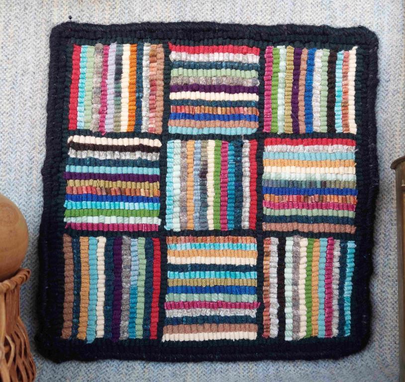 Sweet little Hooked Candle Mat #1 Hit and Miss. Hooked by me using my hand dyed Dorr Mill hand dyed wool. The cut is a #6 so it shows a lot of detail but still looks primitive enough. This little rug measures 10 inches by 10 inches square and will look so cute on your tabletop or a mantle. Shipping is included in the sale price. Kindly asking $39.00 with additional shipping of $5.95. Email me at VG004@COMCAST.NET to arrange payment for your purchase. Thanks so much for shopping with our group!