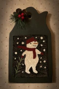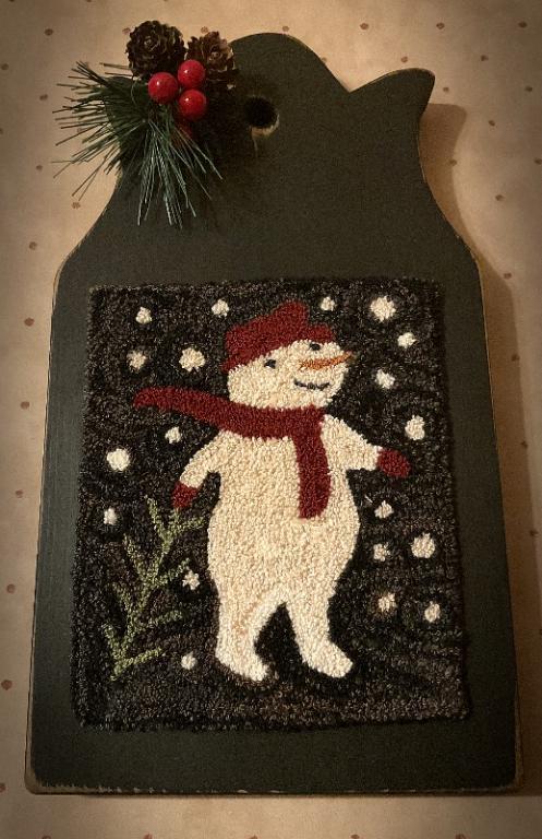 For your consideration, I have made this sweet little snowman."Jolly" All punched with Valdani threads. I have securely attached to hornbook. The whale's tail hornbook has been painted, sanded and antiqued for a nice primitive look. I have added a little greenery; you can take off if you wish. The piece measures 11 inches high and 6 inches wide. This sweet pattern is from Star Rug Company. I will ship for free int the United States. SOLD THANK YOU!!!