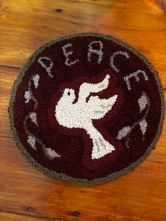 This is a 12" hooked rug/mat, I love the design of this one! It is backed in wool. US shipping will be $5.00. Thanks so much for visiting!