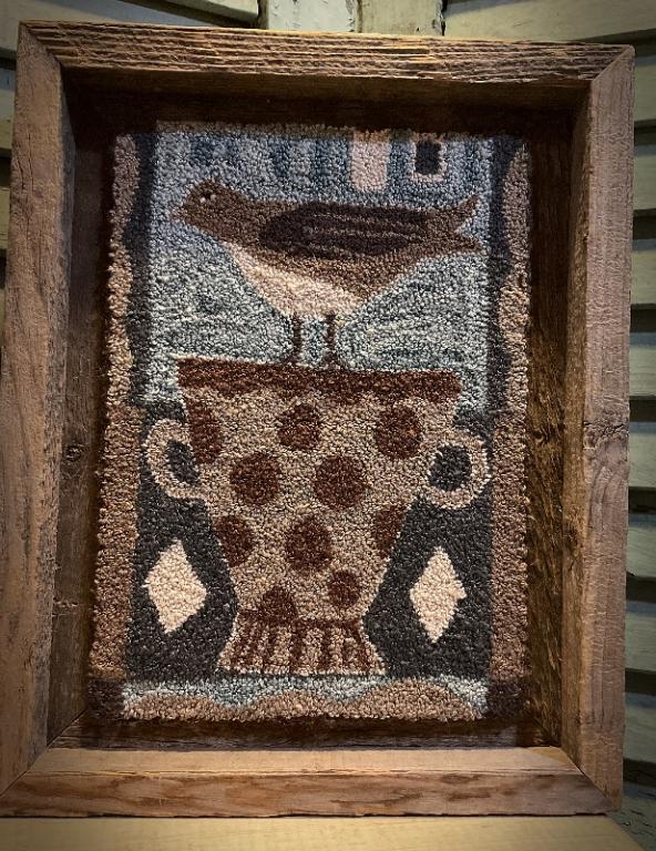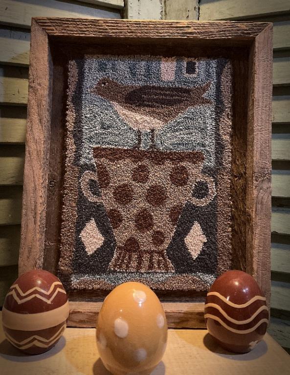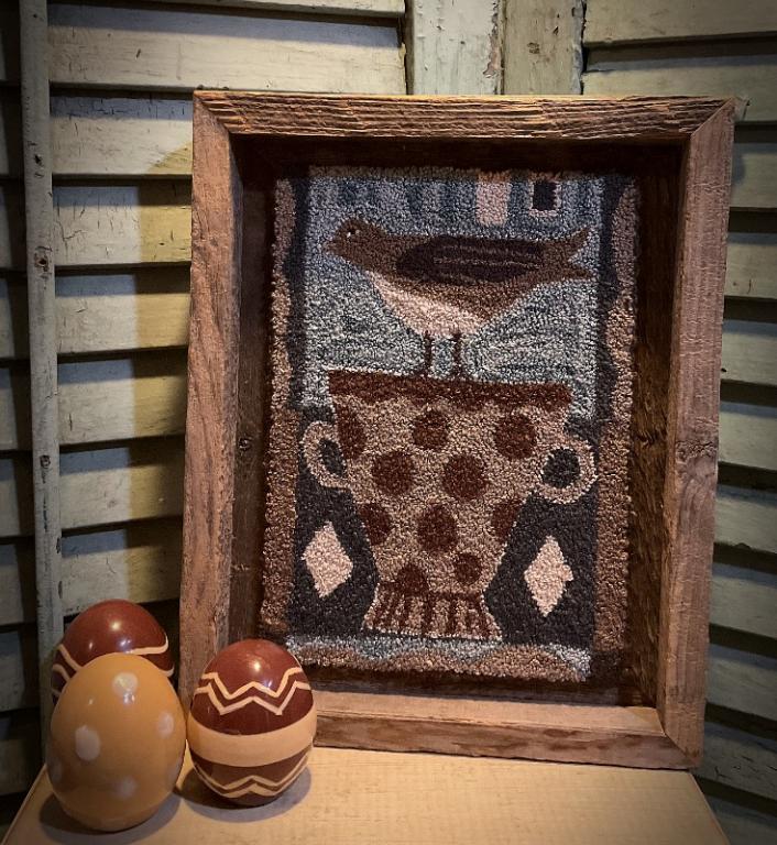 Love this beautiful pattern from Cinnamon Creek Folk Art. Poka Dot Perch is made using Valdani Threads. I have securely attached to this rustic wooden frame. The piece measures 10 1/2 inches tall and 8 1/2 inches wide. The punch needle measures 8 1/2 inches tall and 6 inches wide, so it is a larger punch needle design. Lovely piece to add to your primitive home, while waiting for Spring to return! Shipping is included in the price.
