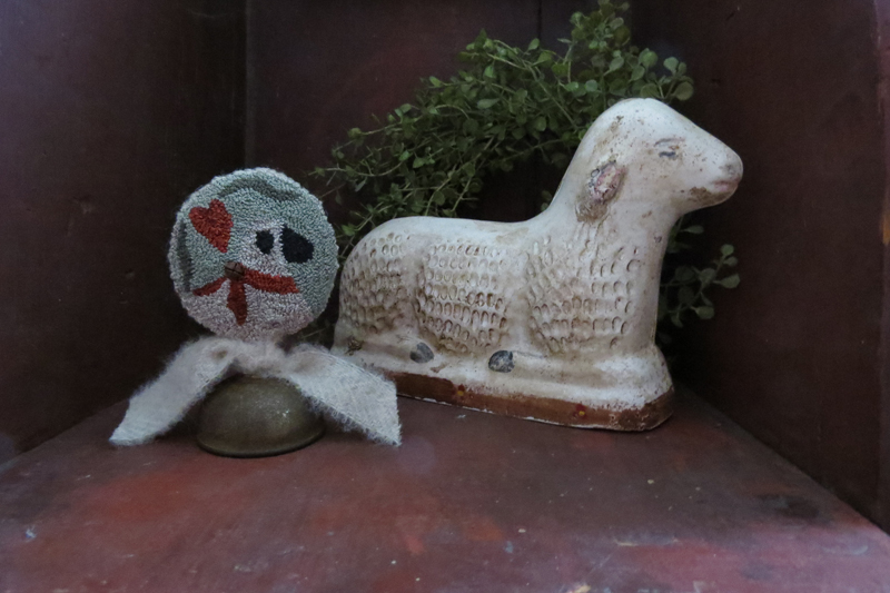 ***CLICK IMAGE FOR ADDITIONAL PHOTO***...I am offering this sweet little punch needle sheep that I have mounted onto an antique oil can. This piece was made using a mix of Valdani and DMC thread. I have backed the design with a piece of 100% wool and stuffed it with a natural cotton filling. I have also sewn a miniature rusty bell on the sheep's neck ribbon, as well as tying a strip of the same, soft backing wool on the tip of the oil can. I am kindly asking 68.00, plus postage for this sweet piece. I gladly accept paypal.....please email mommadonnatx@gmail.com to make a purchase. Thanks so very much for your visit today.