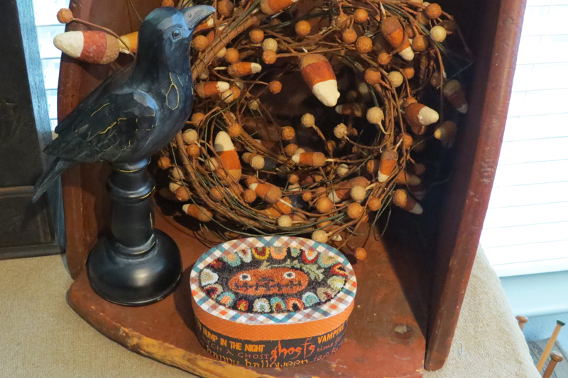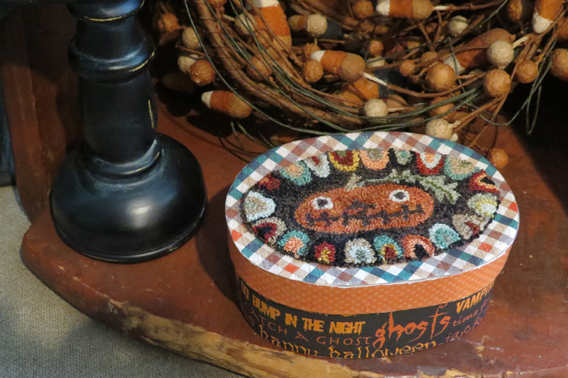 ***CLICK ON IMAGE FOR AN ADDITIONAL PHOTO***.....One of the boxes I am offering today has a punch needle Jack-o-lantern lid with colorful papers covering all sides of the 5" x 3 1/2" x 2 1/8" oval box. I used a mix of Valdani and DMC thread to punch the lid design. I am kindly asking 62.00, plus postage for this sweet Halloween box. I gladly accept paypal.....please email mommadonnatx@gmail.com if interested in making a purchase. Thanks for your interest in PHM...
