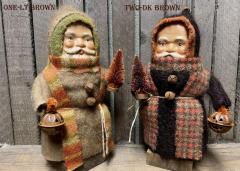 My primitive belsnickles are one of my beloved offerings I create each year. The face is paperclay molded from a vintage mold. It’s attached to a stump muslin body, and painted. I’ve used hand dyed vintage mohair in autumn hues for the coat and hat. He carries a rusty jackolantern bell and little bleached and dyed tree. His waist is tied with a jute cord and a woolen scarf is wrapped at the neck. A rusty jingle bell is stitched to the tip of the hat and two bells on his coat front. He stands on a chunky stained wooden base. He is just under 9 inches tall. He will come signed and dated. PRICED INDIVIDUALLY... Choose your number from the dropdown menu. Created with many loving stitches in my smoke free home, a Sassafras Hill original. *tis spoken for, thank you*