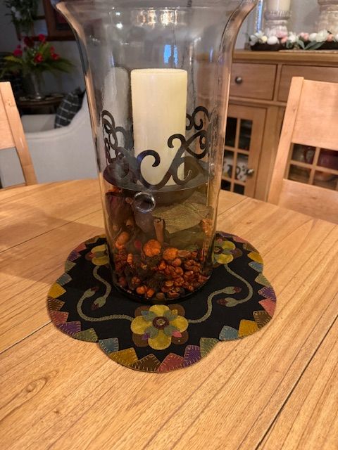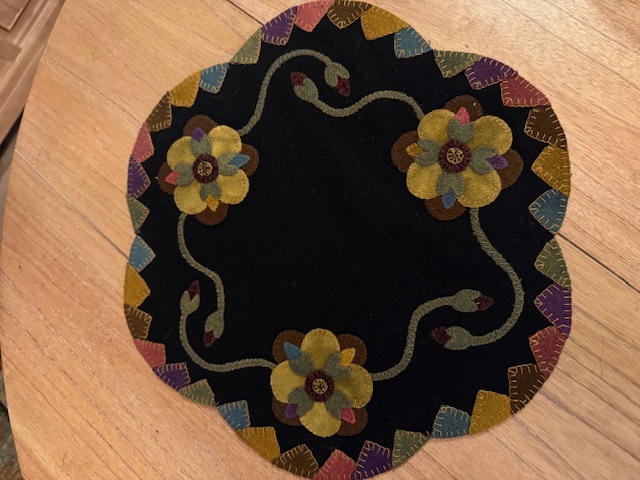 AppliqueThis multi color table mat measures 15” x 15”. It is hand stitched wool appliqué on a wool background. You can purchase it for $80 which includes shipping. Email lori@lilyannastitches.com to make payment arrangements. $80.00 Powered by