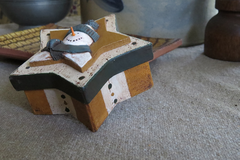 ***CLICK ON IMAGE FOR ANOTHER PHOTO***...Celebrate the time between Christmas and Spring with this cute little star shaped snowman box. The colors used are mainly cream, green and mustard, and then a light antiquing glaze as a last layer. The star box measures about 4" x 3 1/2"...there is not a great way to measure a star! I am kindly asking 22.00, plus postage. I gladly accept paypal.....please email mommadonnatx@gmail.com to make a purchase. Thanks so very much....I am ^Grateful^ for your visit!