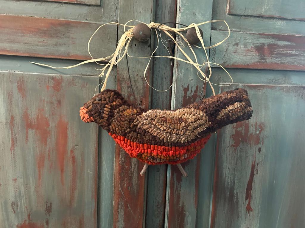 Hook~Sold~ I made this hooked Robin to be hung or displayed in a bow, basket or wreath…it measures appropriately 11” x 12” with wire no wire the bird itself measures 11” x 5” …. Happy Spring! Thank you for visiting… $42.00