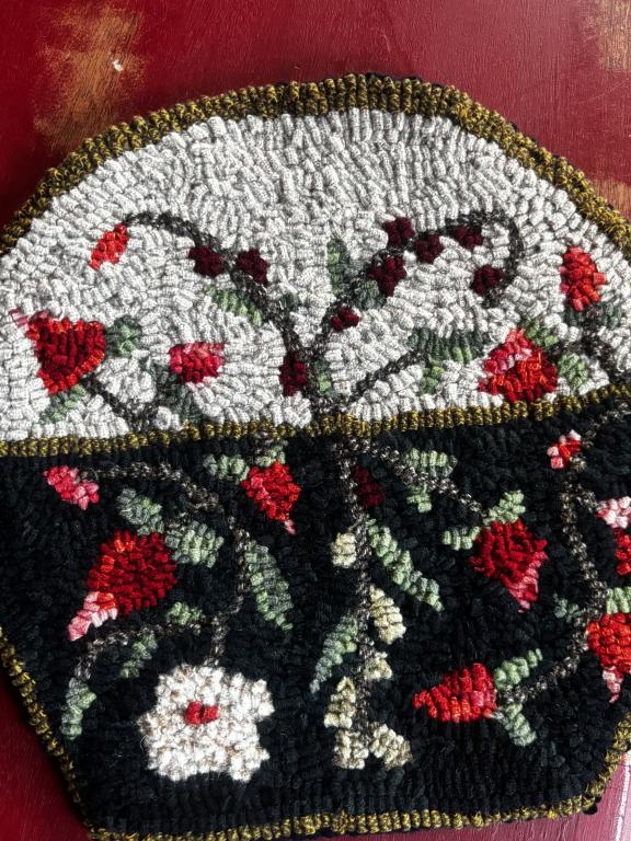 I just love this beautiful hooked rug in the shape of a strawberry filled basket. It is great for the summer months but also for year-round display. It measures 11 x 12“ US shipping will be five dollars. Thank you so much for stopping by to take a look at my page!