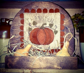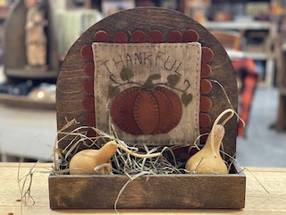 This is a beautiful Teresa Miller design! I stitched it on linen, then added it to this wooden shelf/cupboard. The shelf measures approximately 12 x 14 x 4. I will include the prairie grass and two gourds. This has substantial weight to it.