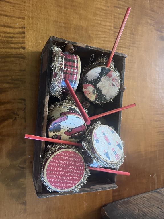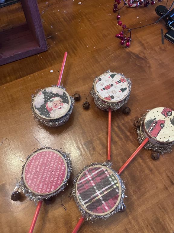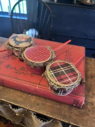 Handmade vintage inspired Christmas noisemakers - wonderful addition to your Christmas prim or vintage decor. These are filled with spices to make a bit of noise- vintage tinsel trim and rusty bells. They are approx, 6 inches. Please specify which one you would like in the paypal instruction section. If you don't choose a specific one I will choose one for you! Price includes shipping. NOTE if you would like more than 1 please email me krankykatprims@gmail.com and I will do a custom paypal for you.